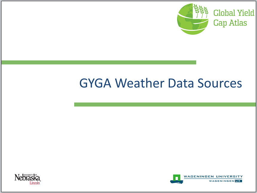In all cases, recent data are desirable (preferably after 2000) to prevent possible climate change effects and be consistent with NASA/TRMM data. We also note that more years of weather data (>10 years) maybe desirable for countries with high year-to-year variation in weather and yields (see Grassini et al., 2015).