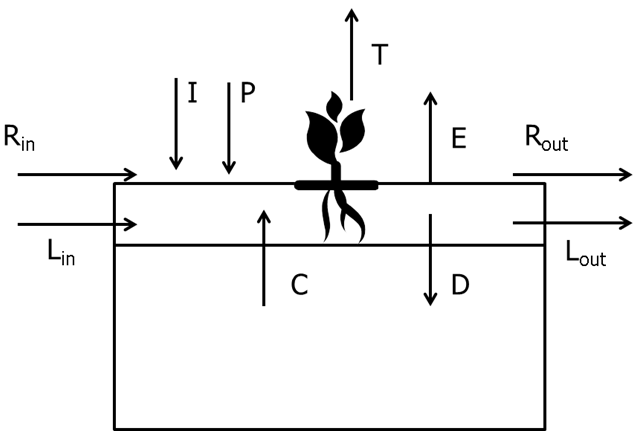 Lateral flows (L), surface run-on (Rin), and capillary rise (C) can be important components of the water balance in specific cropping systems and regions, however, current simulation models do not have the level of sophistication or data inputs are not available for robust estimation of these components. Hence, the above equation should be simplified as follows: